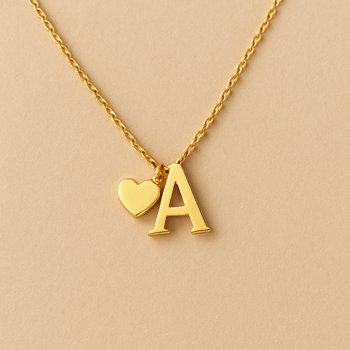 Descobre um colar que une elegância e personalização, com um pendente delicado em forma de coração, disponível em ouro e prateado, ideal para expressar a tua individualidade.